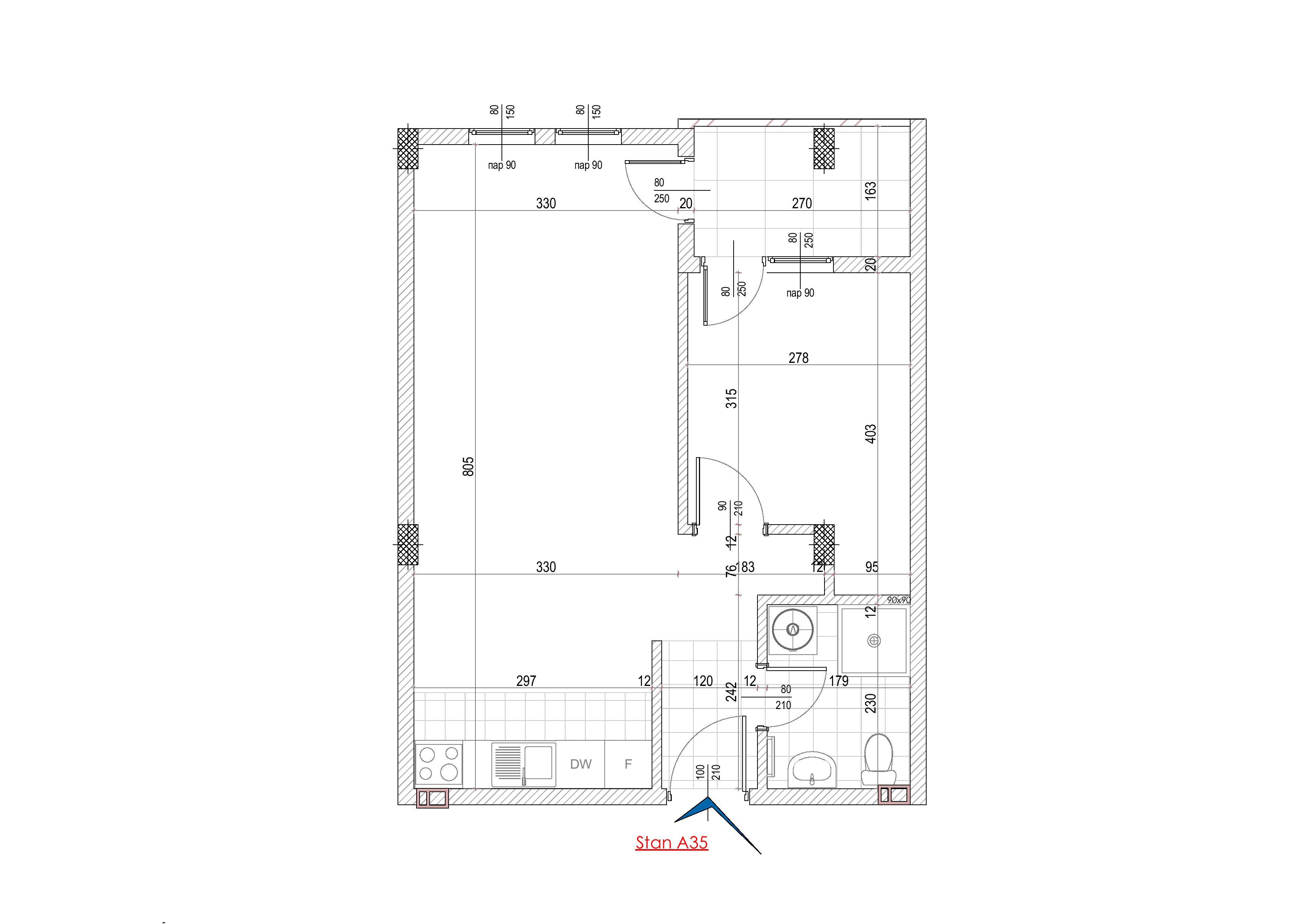 Stan A35 je funkcionalno projektovan jednosoban stan ukupne neto površine od 46,57 m², koji pruža optimalan raspored prostorija i udobnost za svakodnevni život.