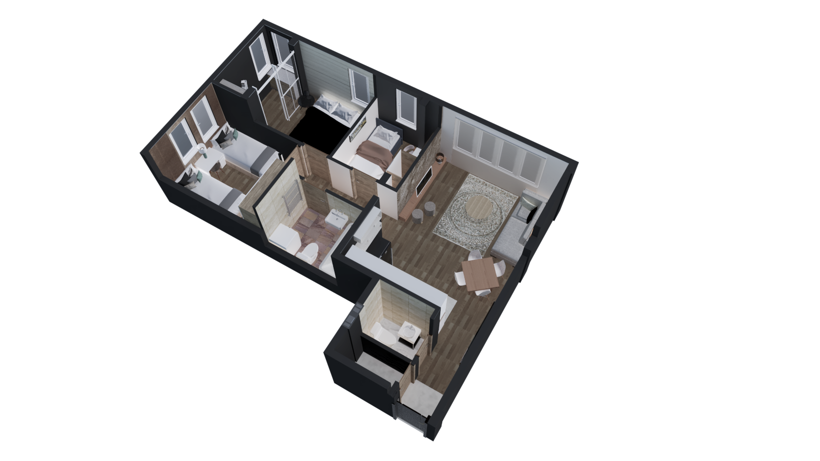 Celokupna organizacija prostora u stanu A3 osmišljena je tako da pruži maksimalnu funkcionalnost, udobnost i osećaj prostranosti.