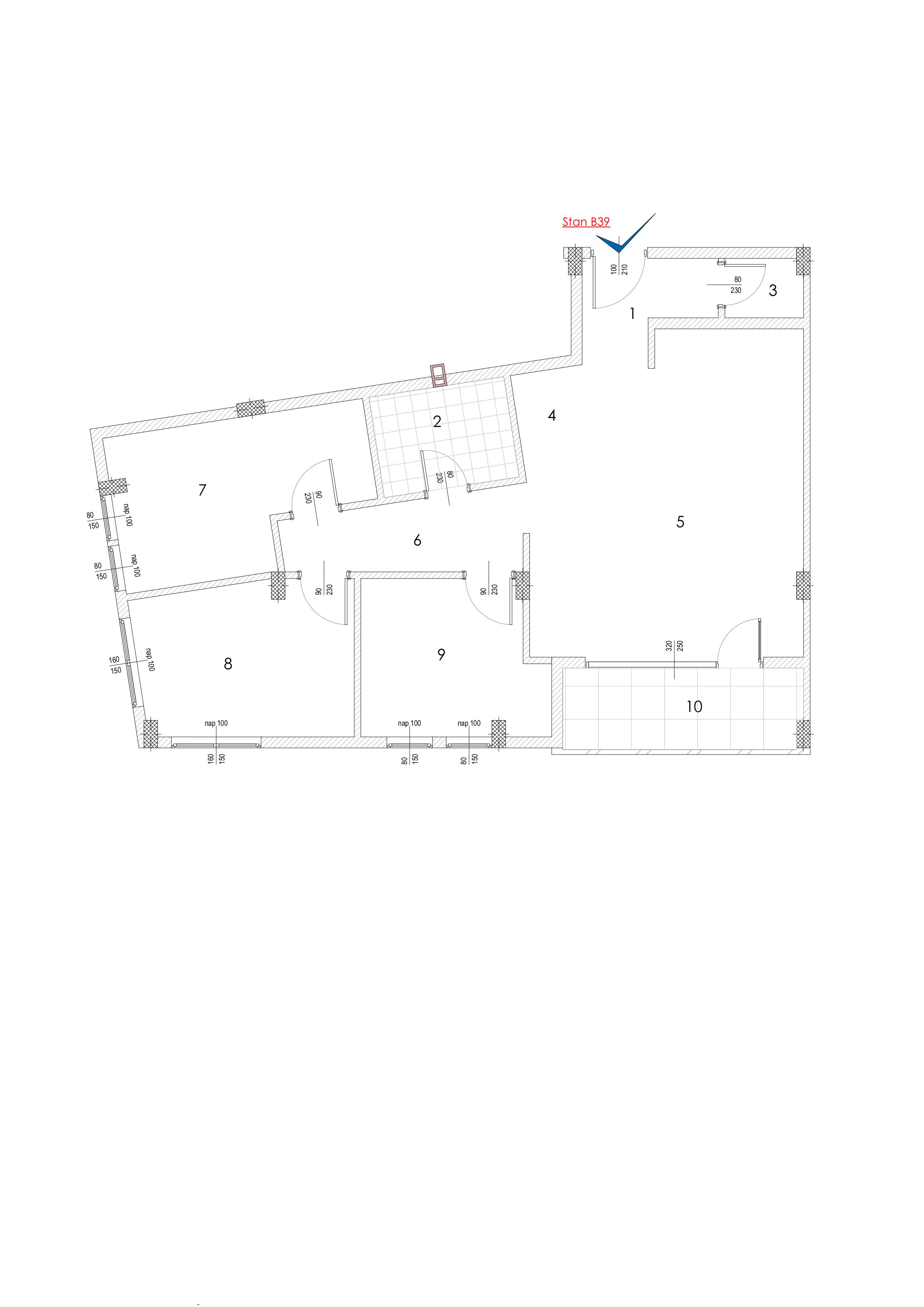 Stan B39 je funkcionalno projektovan trosoban stan ukupne neto površine od 79,35 m², koji pruža optimalan raspored prostorija i udobnost za svakodnevni život.